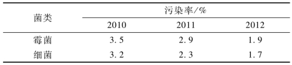 由表4可知,与2010年相比,2012年金线莲香蕉视频下载地址链接苗细菌污染下降率为1.5百分点,霉菌污染下降率为1.6百分点。艾叶与苍术联合熏蒸法对金线莲香蕉视频下载地址链接生产空气灭菌效果较佳,适用于金线莲香蕉视频下载地址链接苗工厂化生产。